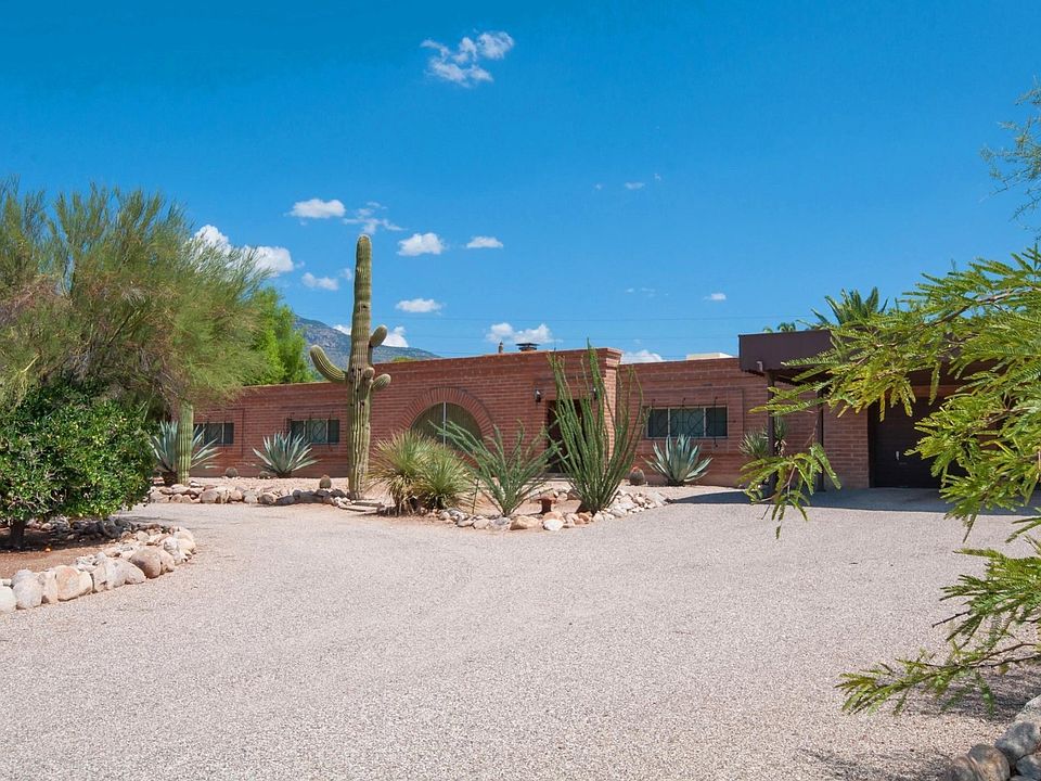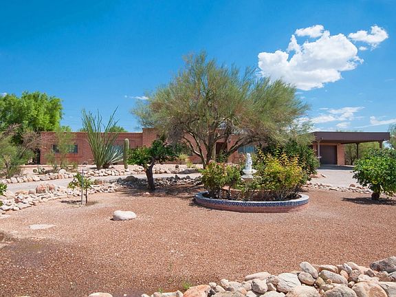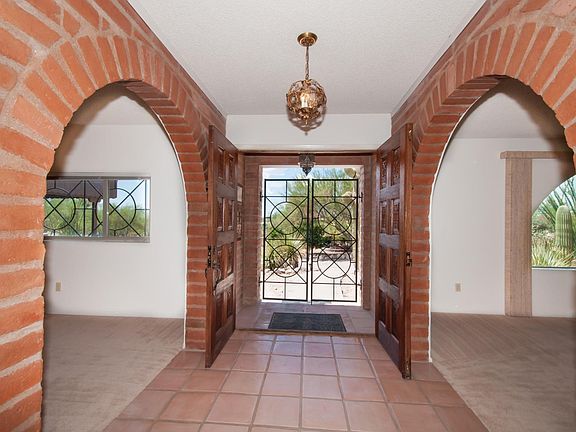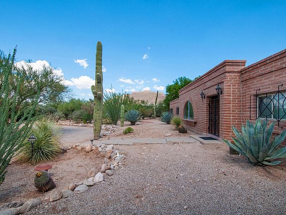 For more information on this property, contact the Listing Agent, Peter DeLuca at (520) 977-4770 or PeterDeLuca@realtytucson.com. Lovely Catalina Mountain and city views from this traditional burnt adobe hacienda in sought-after Santa Catalina Estates. Exposed adobe walls, arches and cozy 2-way fireplace are rich with character. 4 bedrooms and 3 baths with a split floor plan for privacy. Saltillo tile in the entry, kitchen, family room and baths. East facing backyard features mature palm trees, saguaros, a lovely pool, grassy lawn, pavers and a large covered patio. A spiral staircase leads you to the rooftop viewing deck. SOLAR electricity, hot water and pool heater (see attached for detailed information) plus newer dual pane windows for energy efficiency! Garage floor is epoxy coated. Even a Sports Court in back for fun. Call to see today!