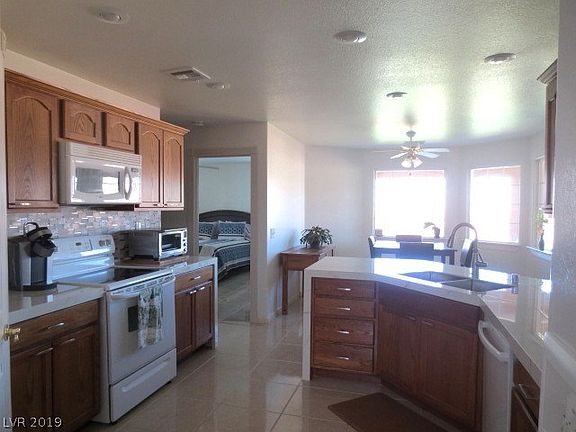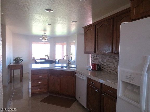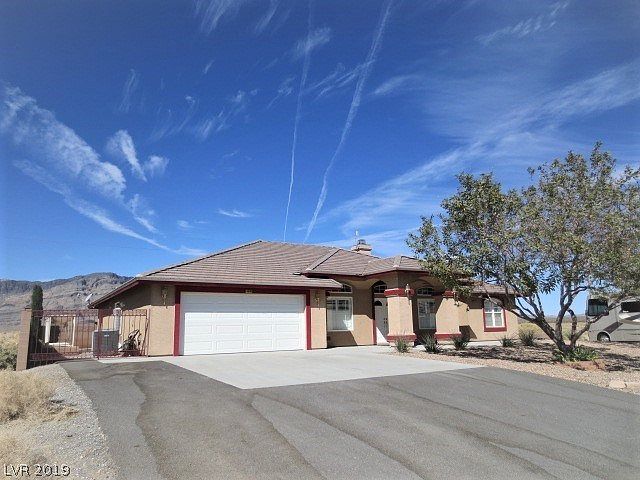 Beautiful custom home at foothills of Pahrump w/ fantastic views of Mt Charleston.Floors are tile and plantation shutters throughout.Kitchen counters composite Italian porcelain w/ solid wood cabinets , under counter lighting. Great room is wired with extra circuits. Master ba has a jacuzzi tub /separate shower. Yard is professionally landscaped, firepit, WIFI control irrigation. New H20 heater,water softener & air handler motor. 30 AMP for RV