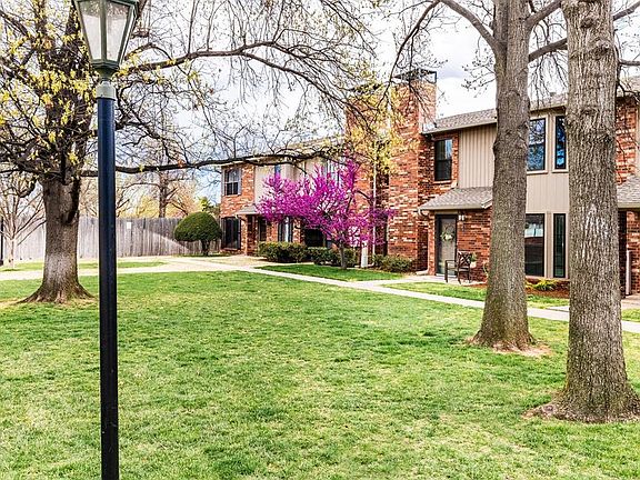 Do NOT miss looking at this updated condo located in a gated community with one of the BEST locations in OKC!! As you enter the condo you'll look through the entry to the living area with windows on both sides of the gas log fireplace..The living/dining area boasts a fully mirrored wall in the dining area! The dining area is open to the kitchen which boasts new granite counters and tile backsplash, new light fixtures over the bar area, microwave, refrigerator (yes, it stays!), a pantry area that is across from the inside laundry room, complete with washer and dryer that also stay!! There's also an eating area at the opposite end of the kitchen! A downstairs guest bath is just off the entry! The upstairs master bedroom boasts a fireplace and a walk-in closet as well as a skylight in the bathroom! The guest bedroom has a full bath attached! As you walk out the dining area through the glass doors there is an outside deck, anxiously waiting for you to plant a small garden! The oversized two car garage has plenty of room for storage! The HOA takes care of the lawn, as well as providing a community pool, tennis courts, exterior insurance (from the studs out), plus water and trash service. Easy to see! Don't wait this one will be gone!!!!