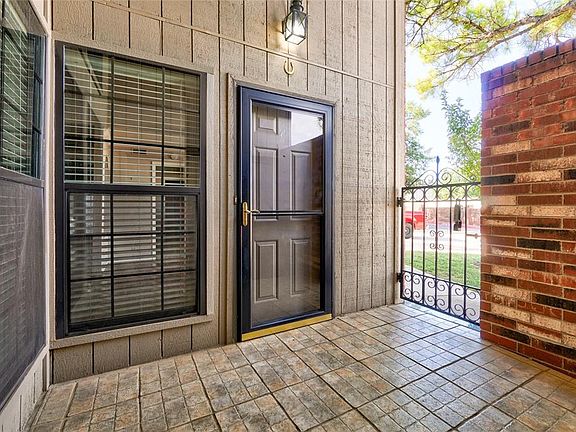 Location, location, location! Hurry to see this fabulous gated condo that's just waiting for YOU! Gleaming laminate wood floors and soaring ceilings greet you as you enter this spacious condo. Sunny windows provide a light, bright and airy feel. The living room boasts cathedral ceilings, a cozy gas logged FP, & book shelves. It opens to the dining room with a large bay window. The kitchen has granite counters, a pantry, nice counter space and opens to the inside utility room as well as the dining area. There are three large bedrooms, all have their own private bath with a tub/shower combo, ceiling fans and walk in closets.(One bedroom is downstairs). The garage is oversized with an amazing wall of storage and a storm shelter. There are two fun patios on the ground level and one balcony porch. Forget about the yard work because the HOA covers that, the pool, tennis courts, the gates, the streets & lights, exterior insurance (from the studs out), plus water and trash service! The backyard greenbelt is lush with mature trees and plantings. Excellent area close to the Parkway, shopping and restaurants. Easy to see today!