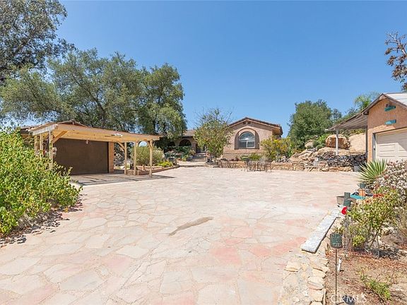 Discover unparalleled tranquility and PANORAMIC VIEWS in this exceptional 3-bedroom, 3-bathroom main residence with PAID OFF SOLAR, SUPER LOW TAXES, NO HOA, complemented by a separate 1-bedroom, 1-bathroom ADU!!! Nestled on 2.55 acres, this property epitomizes serenity and luxury. A custom flagstone driveway with gated entry ensures utmost privacy as you approach the home. Step inside to find exquisite details including a custom glass paned door, distressed mahogany flooring and elegant marble tile in the living areas. The gourmet kitchen is a chef’s delight with stainless steel appliances, a center island with electric stovetop, convection oven, custom granite countertops, and pendant lighting. The family room features a cozy wood-burning fireplace, exposed wood beams, and opens onto a deck with mesmerizing views. A sunken dining room and expansive living room offer ample space for entertaining, with the potential for conversion into additional bedrooms if desired. All bathrooms have been meticulously remodeled, with the primary ensuite boasting custom closets, a spacious living area, and a luxurious oversized shower. Enjoy the convenience of custom remote controls for shower in the primary bathroom, allowing you to personalize your experience to include bluetooth music. Outside, a wrap-around porch overlooks beautifully landscaped gardens, fruit trees and the valley below. Additional features include multiple outbuildings, newer AC and water heater, dual garages with workshop areas, carports, and a sizable workshop adjacent to the ADU. The ADU itself has been updated with wood flooring, a new full kitchen including new cabinets, granite countertops, center island and remodeled bathroom. Washer/dryer hookups are a bonus this wonderful unit that offers a perfect guest house or rental opportunity. Surrounded by natural rock formations, walking trails, and fruit trees, this property offers both seclusion and convenience, just moments from Fallbrook’s schools, restaurants, and shopping. Don’t miss the chance to own this extraordinary estate that combines unparalleled views with very private living. Put this on the must see list of homes!