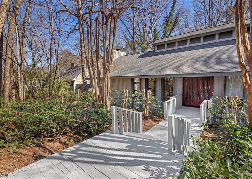 This is a true, one of a kind, contemporary nestled in the heart of Sandy Springs. Step across the bridge and enter a home designed by prominent architect Henry Norris in 1971. It is perfectly incorporated into the rolling lot, with thoughtfully placed windows bringing natural light into every room. Every detail has been carefully planned, from the original spiral staircase connecting the floors, the unique lighting in every room, and renovated open kitchen. Mix drinks at the original built-in bar, dine in the large formal dining room, or enjoy the peaceful surroundings from the patio over looking the flat back yard (perfect for a pool). Large two car garage for ample parking and storage. Sidewalks connect the quiet community, which backs up to the Chattahoochee River to complete the sincere scene. Optional swim/tennis memberships available!
