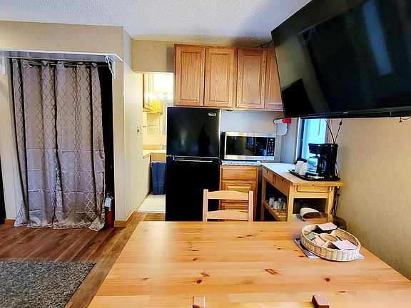 Located in the historical lodge at the base of Schuss Mountain at Shanty Creek Resort, this room is walkable to the indoor pool, golf course, walking trails, and slopes. This room size is the biggest in the lodge and located on the desired 2nd floor. Sold furnishings with 55" smart tv, new heat/cooling system (a $1200 value), refrigerator, microwave and more. The space is big and you can use your ideas to create the space you need it to be. The seller does not rent but short term rentals are permitted here.