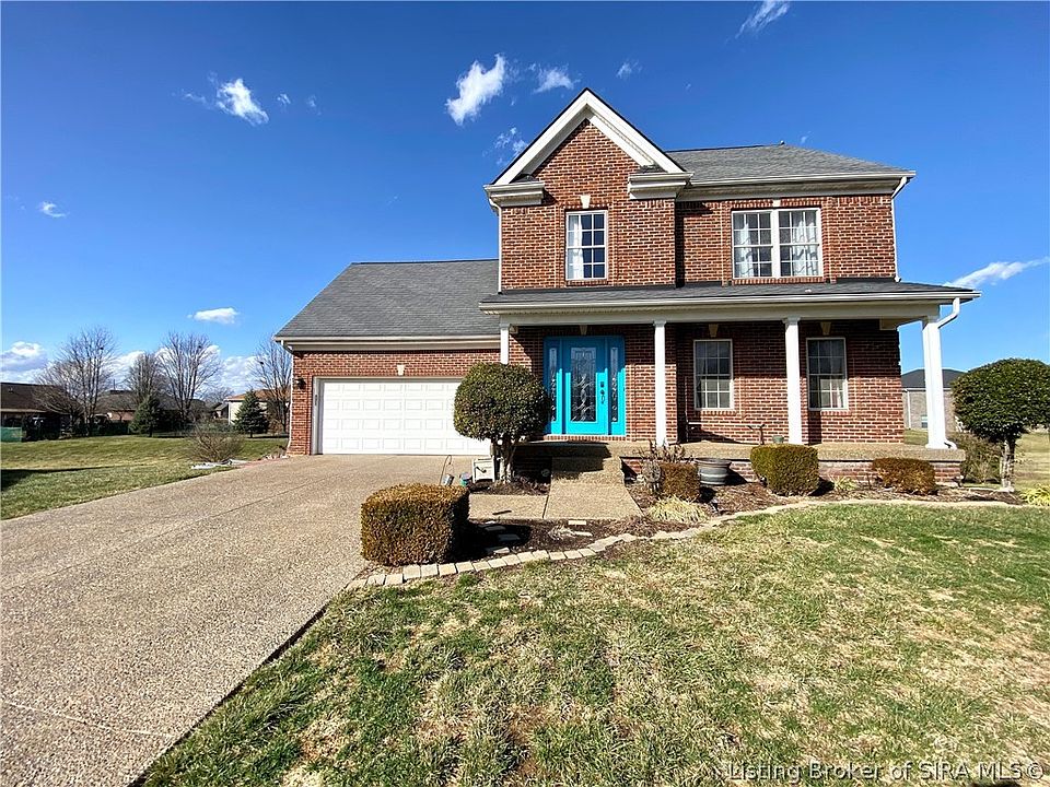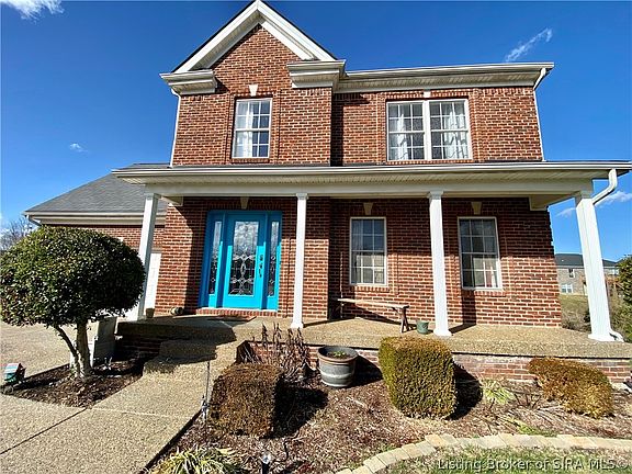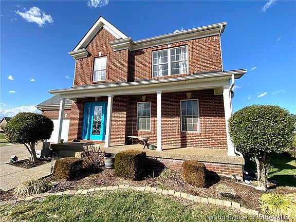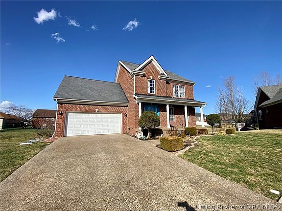Here is an opportunity to own a massive home for a great price just two minutes away from Silver Creek Schools in Sellersburg. The envy house of the neighborhood for years! This stately colonial style home is stacked with three floors of living space. This all brick home features FOUR bedrooms and 2.5 baths and a large 20 x 25 extra deep garage with custom epoxy floor. Large covered front porch for relaxing in your own CUL-DE-SAC perfect for letting young ones play on a quiet street. A full finished BASEMENT with storage area, living room area and an extra flex/recreational room. Great sized living room connected to the formal dining room area. The kitchen consist of all white cabinets, pantry, and large eat-in area with access to the back porch. Make your way upstairs to see four bedrooms including the owners suite that consists of trayed ceilings, jetted tub, double bowl vanity, stand up shower and walk-in closet. Laundry closet on upper floor, and second full bath. Take a look outside to notice a huge .41 acre lot and backyard, large deck and covered deck below with hot tub pad and large shed for extra storage. You will not want to miss out on this house as the price per sq ft is competitive with neighboring homes. USDA eligible area with little as no money down to those who qualify. Taxes, Sq Ft approximate-HOA info, restrictions, school districts must be verified by buyers/agents.