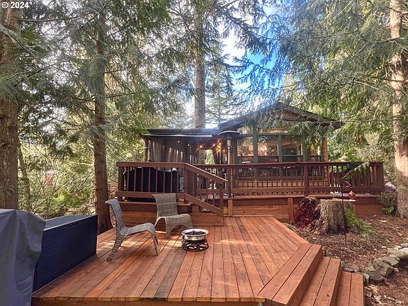 OPEN HOUSE SAT. JUNE 22nd, 10:30am -12:30pm. Escape to this enchanting cabin nestled in the community of Mt. Hood Village. Surrounded by majestic, mature trees, this location offers a tranquil and picturesque setting that will captivate your senses. Immerse yourself in the beauty of nature. Step inside this cozy cabin and discover a world of convenience and comfort. The kitchen is thoughtfully equipped with top-of-the-line amenities, including an LG exclusive InstaView SS refrigerator, a new stand-alone LG gas stove/oven, & a 6-stage water filtration system that ensures clean & pure drinking water. Modern faucets add a touch of sophistication to your culinary experience. Additionally, a new LG washer/dryer, a 40-gallon hot water heater, fresh paint, & engineered hardwoods throughout have been meticulously added to enhance your comfort. The bathroom has been tastefully updated, boasting new tile, sink/vanity, and toilet. For those chilly mornings, indulge in the luxury of a towel warmer, adding a touch of warmth and comfort to your daily routine. A short stroll will lead you to the community pond, where you can bask in the serenity of nature while observing the graceful ducks gliding across the water. This cabin boasts a spacious outdoor wrap-around deck, featuring both upper and lower entertaining sections, ensuring privacy and tranquility. These inviting spaces are perfect for adding a jacuzzi, hot tub, grill, or fire pit, allowing you to relish the crisp mountain air & create cherished memories with loved ones. As a resident of this community, you'll have access to a host of amenities, including a pool & playground, providing endless recreational options for individuals of all ages. Mt. Hood itself offers a wealth of year-round activities. Embrace the spirit of adventure and embark on unforgettable experiences in this captivating mountain paradise.