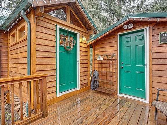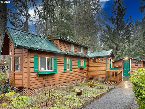 Ideally located in a secluded section of Mt Hood Village, this 1 bedroom plus loft cabin backs to a creek feeding into a pond visible from the generously sized back deck. With a mini split system and electric fireplace in the living room, this home offer extra perks : a metal roof with leaf guarded gutters, water purifier for the kitchen and bathroom, enclosed entry/mud room, enclosed sunroom, work shed housing the washer/dryer plus room to keep personal items out of the weather as well as a recently serviced backup generator and additional storage under the deck. Association includes a rentable clubhouse, playground, basketball court, gym and hot tub with small general market and restaurant within the community. Enjoy full time mountain or vacation living. One hour to PDX, 17 minutes to Goverment Camp and 25 minutes to Timberline.