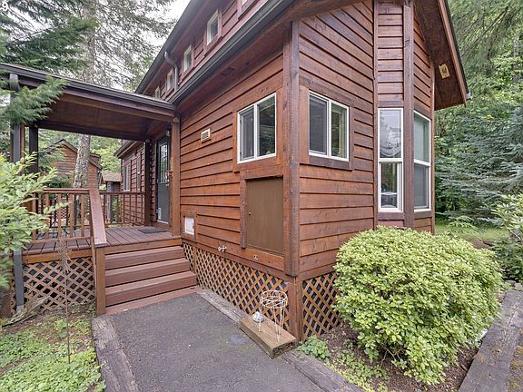 Sweet and tranquil cabin located in Mt. Hood RV Resort. This gated community cabin backs to the Sandy River and surrounded by wonderful walking trails and perfect access to Mt. Hood. Large living room with vaulted ceilings and a cozy fireplace. Full size kitchen with breakfast nook. Spacious covered deck and outbuilding.