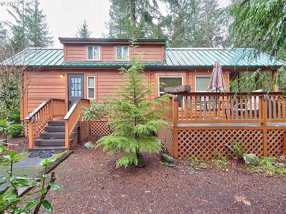 Welcome to Mt Hood Village gated community - River Forest #27. One of the best locations in the park! So very picturesque. This Mt Hood Village cabin style home is in the most desirable location in the village. Enjoy the sounds of the Salmon River and wildlife! A beautiful setting. Salmon River is catch and release only and its frontage location is not in a flood zone. Metal roof! Vinyl windows. Covered deck to enjoy extended living space. Adjoining larger deck for entertaining. Parking for two vehicles. 10x10 shed. Going inside all the furnishings are included. There is a bedroom on the main floor plus a spacious loft with another bed. Some use the loft space as an office too. So welcoming and relaxing. Come take a tour and relax by the Salmon River. Only minutes to hiking and biking trails and mountain recreation. 13 miles to Sandy. About 40 minutes to SkiBowl and Timberline Lodge. Mt Hood Village cabin owner can enjoy the many amenities such as updated work out facility, pool, hot tub, and lodge room for private gatherings. Park fees cover the park amenities plus garbage service, water, sewer, and basic cable. Come tour this adorable cabin. Financing available.
