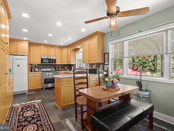 Welcome to this beautiful 5-level split home nestled in the desirable Allview Estates community of Columbia. A true retreat-style backyard awaits, complete with a serene waterfall pond, an open deck, and an expansive bluestone patio perfect for outdoor entertaining. Enjoy gardening in the enclosed vegetable garden or storing tools in the custom stone exterior shed. This home has been thoughtfully updated, including the roof, windows, doors, and primary bathroom. The entry-level features a bedroom, powder room, and family room with a cozy wood-burning stove and built-in shelving, with sliding door access to the backyard. The living room showcases hardwood flooring and a large bay window, while the eat-in kitchen boasts a peninsula island, light wood cabinetry, stainless appliances, and a dining area with convenient carport access. Retreat to the primary bedroom, complete with a walk-in closet featuring a window for natural light, and a remodeled luxury bath featuring a soaking tub, frameless shower with seating, dual vanity with lighted mirrors, and decorative tile surround. A second bedroom and full bath complete this level and the lower levels offer a flex room, hobby room, and ample storage space. Don't miss the opportunity to make this wonderful home yours!