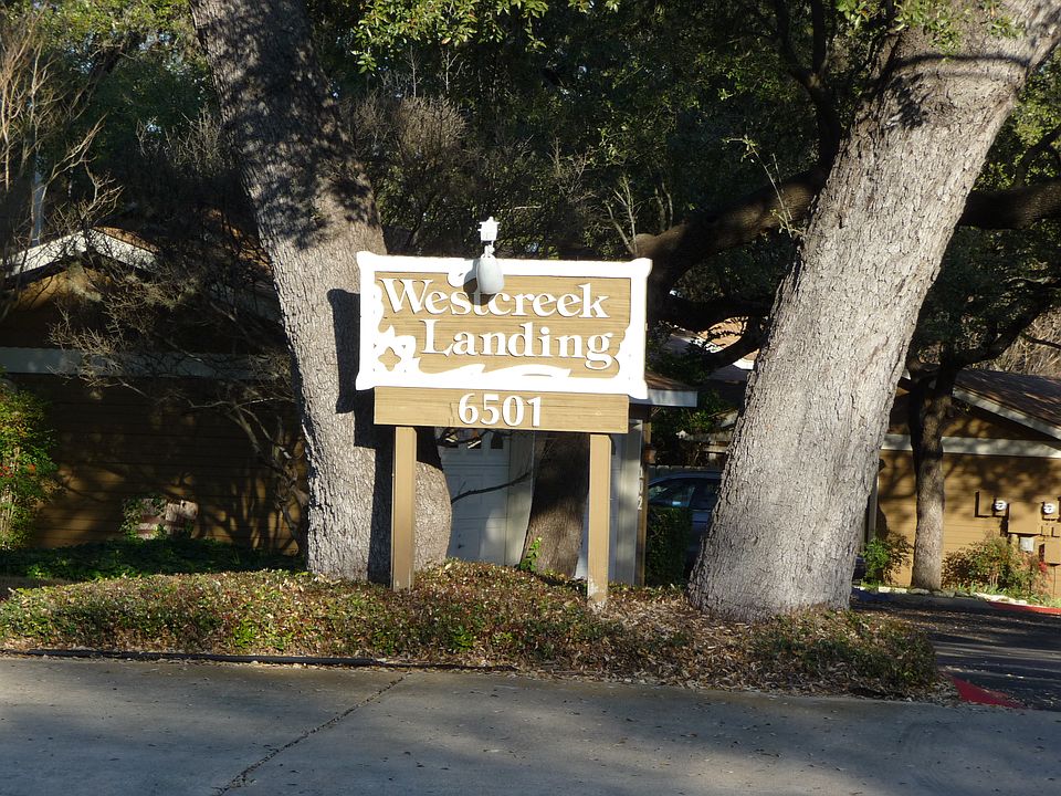 Largest floor plan in the quiet, well maintained Westcreek Landing close to William Cannon, Brodie Ln, Oak Hill & easy access to Mopac. This spacious condo offers 2bdrms, 2 full baths, lvg rm w/stone fireplace, study/office w/wet bar, laundry rm, enclosed patio & oversized 1 car garage + 1 space for visitor parking. NO CARPET, sec system, Refrigerator, Washer & Dryer convey. 4 tenants max.