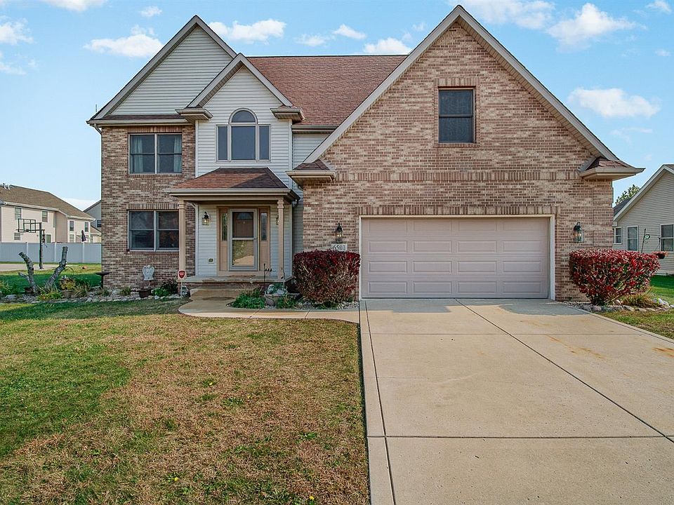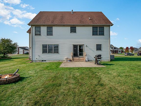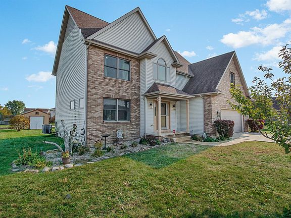 Beautiful 2 story in Prairie Estates subdivision. This lovely home features a beautiful foyer, formal dining room, powder room, and a large eat in kitchen. Custom window treatments installed on all the main floor windows. Kitchen offers maple cabinets, newer Stainless Steel appliances, and a breakfast bar with doors leading out to the patio. The spacious family room on main level has gas fireplace and recessed lighting. The four bedrooms are located upstairs with a full bath plus the master bedroom has a walk in closet and private bath. Second Floor Laundry room with newer washer/dryer staying. Full unfinished basement has roughed in plumbing for 4th bathroom. Nice size backyard with patio and firepit plus a storage shed. The huge attached 2.5 car garage is drywalled. Furnace, Central Air & Hot water heater all updated and ace in the hole back up battery sump pump included. Great location close to shopping, restaurants, schools & more!