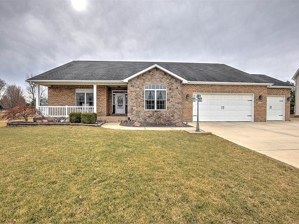 Ranch setting at the end of cul-de-sac on .81 acre lot. Enter from covered front porch you will be amazed by the 9' ceilings. Front home office and formal dining room. Great room with arched, brick trim opening into the kitchen that also has a breakfast bar out to the hearth room with gas fireplace. Split bedroom plan with jack & jill bath. Awesome master suite with door leading directly to sun room. Main floor laundry room.The lower level includes large rec area plus exercise room. 4th bedroom. Bar room that is open to theatre/media room. Home has annual contract with Sebens for maintenance of Norweco system. Radon system in place. Irrigation system. PLEASE REMOVE SHOES OR USE "SHOE COVERS". Please request relocation documents before writing offer.