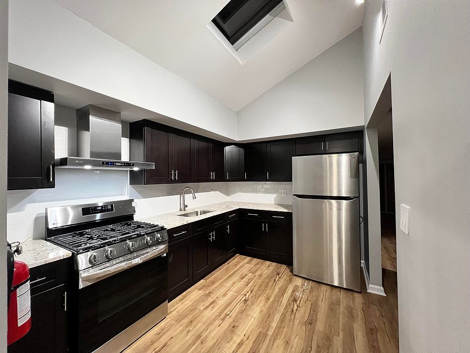 Don't miss this excellent opportunity to rent this newly renovated 3 bed 2 bath home with office nook. With over 1000 sq ft of living area, outdoor spaces and off-street parking, this home is the complete package! You will love the flexibility for arranging your furniture in this vast living/dining room area leading to a large front balcony, stretching the full width of home! The freshly updated kitchen features: new cabinets and countertops, generous workspace, gas cooking, and vaulted ceiling with skylight. The master bedroom suite includes a private bath with laundry, linen closet and balcony with sweeping sunset views of the Meadowlands. Other home features: East, South and West exposures for maximum light, fresh paint, new floors, overhead lighting, Wash/Dry in unit, and 1 car parking on driveway. Schools and parks a block away, close to all transit, dining and shopping. Fees to tenant: $50 application fee, 1.5-month deposit. Avail. 6/1, 6/15, flexible. Sorry, no pets. Min credit score 700. Don't miss this excellent opportunity to rent this newly renovated 3 bed 2 bath home with office nook. With over 1000 sq ft of living area, outdoor spaces and off-street parking, this home is the complete package! You will love the flexibility for arranging your furniture in this vast living/dining room area leading to a large front balcony, stretching the full width of home! The freshly updated kitchen features: new cabinets and countertops, generous workspace, gas cooking, and vaulted ceiling with skylight. The master bedroom suite includes a private bath with laundry, linen closet and balcony with sweeping sunset views of the Meadowlands. Other home features: East, South and West exposures for maximum light, fresh paint, new floors, overhead lighting, Wash/Dry in unit, and 1 car parking on driveway. Schools and parks a block away, close to all transit, dining and shopping. Avail. 9/1. Sorry, no pets.