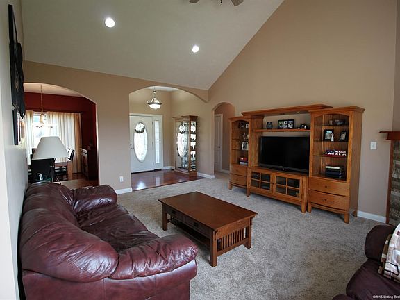 WOW! A Split floor plan walk-out basement like new! This all brick 4 BR/2BA home is MOVE-IN condition. The family room is a great space with a vaulted ceiling and fireplace accented with stone where you'll immediately sense the abundance of natural light, flowing into kitchen with breakfast bar and the formal dining room. All 4 BRs are large with the 4th in basement with large window. Basement also has tons of storage space, media room(still in process), family room, and plumbed for a bath. Recent updates include carpet, Brazilian Cherry hardwood flooring, and freshly painted. None of the storage shelving in garage stays.