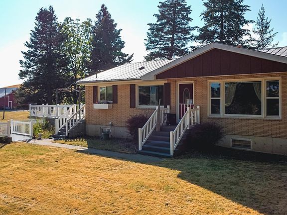 MLS# 259931 Looking to get away from your neighbors and relax on your own land with amazing scenery, a two car garage and a huge barn for all your projects?? You can not beat this opportunity! Imagine yourself waking up in the morning with a cup of joe, stepping outside onto to your balcony overlooking almost 5 acres of your homestead with the sunrise beaming over the rolling hills of the Palouse. As you take in the peace and quiet, the smell of fresh air and the sound of solitude, you will fall in love with this property as you take it all in and enjoy life in its finest moments in nature. This well-built 3 bedroom 2 bathroom home features a durable metal roof, brick exterior, 9 inch I beams and concrete foundation walls. The well-maintained barn is substantially constructed featuring cement floors, access to water and power and is large enough for 50 head of cattle! Stepping inside the home, you are welcomed by an open concept living room and formal dining room with lots of natural light. The kitchen has been updated with new floors and new paint and leads out to the balcony through the glass slider. The main floor is completed with two large bedrooms, original hardwood floors throughout and a remodeled full bathroom. Downstairs features a spacious master suite with a private dressing room, walk in closet and 3/4 bath. This level is completed with a secondary walk in closet, a large laundry room with utility sink, separate shower, a mud room, storage room and access to the attached two car garage. Upgrades include a new well system (2022), new water filtration system with filters, new 4" drain system from the home to the septic system (2021), new appliances and flooring in kitchen and laundry room (2018), new cabinets in laundry room (2018), new carpet (2018), new interior paint (2018), new trim (2018), new light fixtures (2018), and new outside railing (2017). Call today because this homestead has enough space for your dreams!