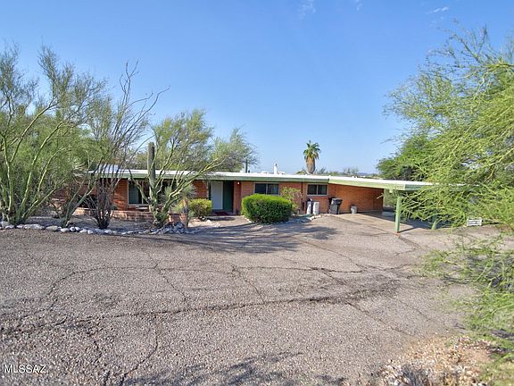 Classic Burnt Adobe home nestled in the foothills awaits your updating touches! Mid Century modern 4 bedroom, 2 bath home, features sunken living room with bee hive fireplace, formal dining and family room off the kitchen. Bedroom #1 has an Off the wall bed and built in dresser, Primary bedroom with walk-in closet and jetted-tub in the primary bath. The kitchen features newer cabinetry, a baker's island and walk-in pantry, over the range microwave and electric cook top.Step out into the back yard and enjoy the sun-shaded patio, in ground pool and city views. Quick trip to shopping, dining, U of A and Banner hospital.