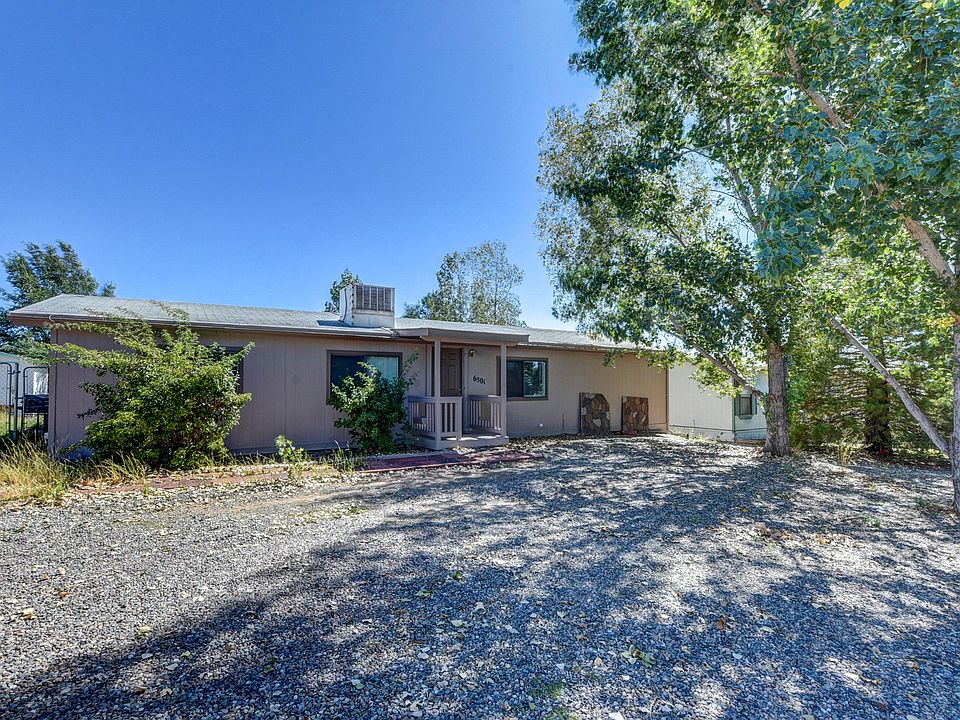 Affixed MFG home in great location in Prescott Valley, close to schools. Three bedrooms with bonus room that could be converted to a 4th bedroom or used as hobby/studio/den. Well-built with 2'x6' frame and extra insulation. Large lot with mature shade trees. Home is on stem wall, has city utilities with evaporative cooling and gas heat. Carpet is only 2 year old and clean. Wood-look vinyl plank flooring in living/dining area. Kitchen has large stainless steel fridge and dishwasher, Gas stove, and Breakfast bar. Chain link fencing in back yard with spacious screened patio that could be easily finished to your taste. Lots of potential with this property! Great for first-time buyers, and a great rental area for investors. Home is being sold AS-IS.