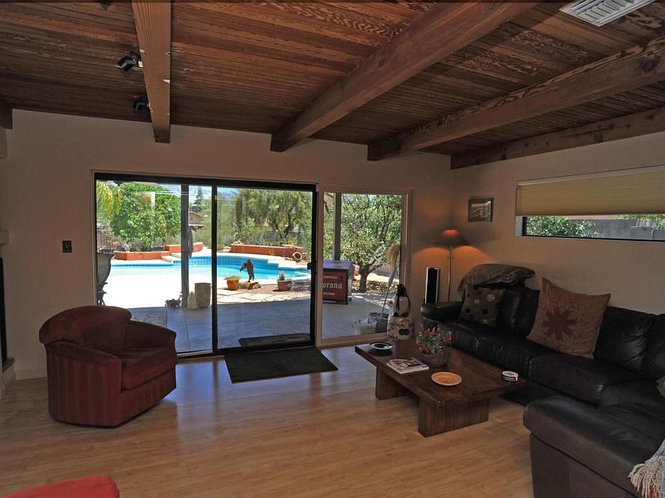 History and Character represent this beautifully situated home on about a half an acre of lush desert vegetation. Located in the Historic Harold Bell Wright Estates, this home is truly unique. Pride of ownership shows throughout including granite, soft close cabinets, original wood ceiling beams, adjustable pendant lighting over bar. Large gourmet kitchen including warming drawers and breakfast bar are perfect for entertaining. Abundant spacing in the backyard with relaxing pool and mountain views. 3 bedroom, 2.5 bath with a large bonus room currently used for home theater. Master bath has heated floors and home also has Solar. Large sliding glass doors bring the outside living in. High ceilings and open floor plan bring modern amenities to this historic property. Also has 3 storage sheds