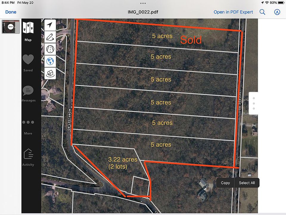 33 total acres. Mostly rolling wooded with building sites on all lots. Already divided into 5 acre lots.