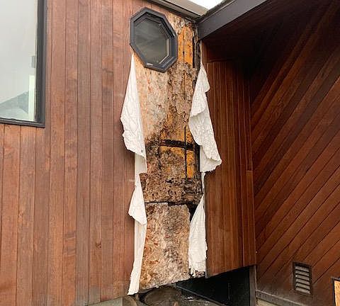 Hillside fixer needing extensive renovation and repairs, but what a home it will once again be. Built originally in grand style with huge center piece rock fireplace, beamed vaulted tongue and groove ceilings, enormous kitchen with custom cabinets and SubZero fridge. The list of property features is extensive and includes a concrete block barn with storage. Priced properly to allow for reno.