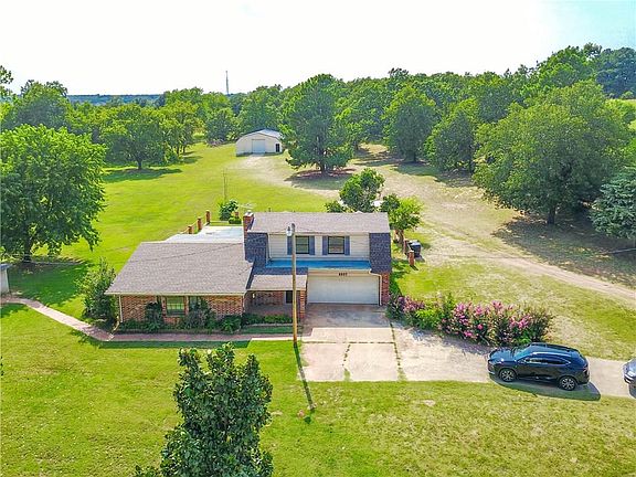 Property is conveniently located right off of I-40 and Choctaw Rd! 5 acres of beautiful land with mature trees and privacy. It has a 1900 sq ft shop with front and back overhead doors. It also has an existing hookup for RV/Trailer if needed. It also features a large back patio with inground pool. This property has such great potential and possibilities!