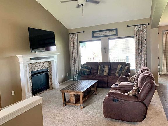 Welcome to this former model home 5 bedroom, 3 baths, 3 car garage, open-concept with beautiful finishes, gas fireplace. spacious open floor-plan, The kitchen will blow you away with the wonderful cabinets to the ceiling with crown molding, granite on the large island, gas stove, a large pantry. Move on into the Pass through laundry room to the master bedroom closet and bath, master bath features a large tub w/separate shower and let's not forget the full finished basement with rec room, office space, two large storage rooms, 2 bedrooms and large bath, large covered deck that steps down into a beautiful landscaped yard, sprinkler system, well, wrought iron fenced yard located on a large corner lot, excellent schools and a fabulous neighborhood.