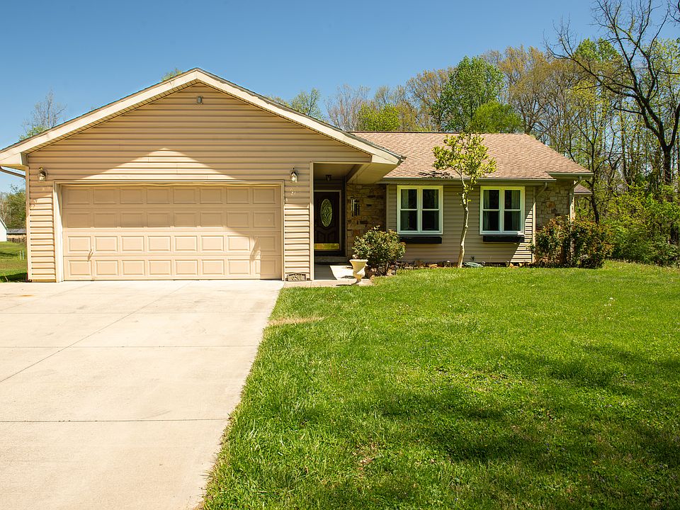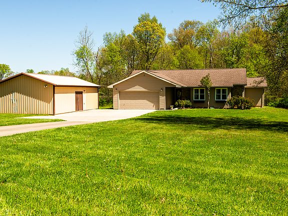 One owner Ranch, north of Columbus - just minutes to everywhere! Vaulted ceiling Great Rm, open to updated kit. Lrg FamRm, 2Bonus Rms, & half-BA in finished Bsmt. Enjoy the (ventless gas) BrownCo stone frplc in the FamRm or entertaining on the back patio overlooking gentle slope of green expanse into the woods. 4parcels sold for total of 4.14ac. Mixture of green lawn & woods, incl an abundant variety of flowering plants, trees, & wildlife. Updates:2023 - Water Heater, Dishwasher, MicroHood; 2020 - vinyl wndws, updated bathrms; 2019 - poured concrete for 6car parking; 2018 - HVAC; 2017 - Granite c'tops, tile backsplash; 2008 - 20'X36' detached Workshop professionally wired, & separate storage for lawncare equip. Beautiful Setting-Must See!