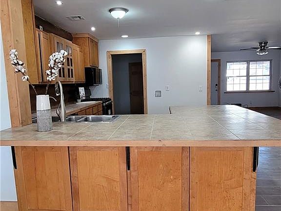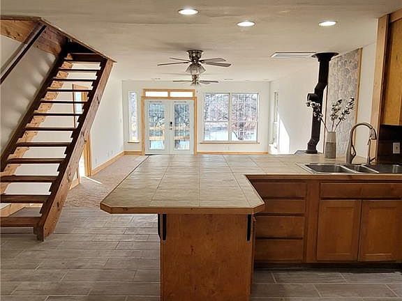 Enjoy your BEAUTIFUL view of Guthrie Lake!! NEW Tile Floor and countertops in Kitchen and fresh paint and fixtures throughout this 5 BR 3 Bath home with 2 car attached garage that backs up to Guthrie Lake. Home features a spacious layout with wood burning stove in the living room, large breakfast bar and stainless appliances in the kitchen. En suite master bath, indoor utility room with built ins and washer/dryer included, with beautiful views of the lake from the back deck, master bed, and the living room. Make an appointment for a private showing today. Buyers to verify all information.