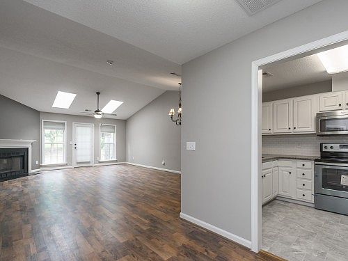 Pack your bags and bring them with you. Once here, you are going to want to move right in. Tasteful updates, an open floor plan, and a prime location converge in your new home. Step across the threshold from the covered entry or the one-car garage onto new flooring that sets the tone for a home full of trendsetting amenities. The new subway tile backsplash and tile flooring compliment the granite countertops and white cabinets. New stainless appliances include a smooth top range, dishwasher and built-in microwave. A wide cutout over the sink allows the chef to take part in conversations going on in the dining and great rooms. A true great room, the living and dining rooms are completely open to one another. The cathedral ceiling spans the whole space with an oil-rubbed bronze chandelier in the dining room and a ceiling fan in the living room. A corner fireplace is the focal point in the living room. Skylights, windows and a glass door drench the living spaces in natural light and highlight the fresh, neutral dcor. Escape to the master suite after a chaotic day. Here you will find a gracious bedroom and a spacious walk-in closet. The private bath boasts two sinks, a decorative mirror, designer lighting and tile flooring. Tucked privately in the front corner of the home, the second bedroom has a new ceiling fan, double windows and French doors opening from the hallway. The second full bath has also been updated with a new countertop, oil-rubbed bronze sink fixtures and tile flooring. Enjoy life outdoors on the oversized patio with plenty of room for dining and conversation. A one-car garage with plenty of storage round out this terrific home. You are going to LOVE life at 6205 Delchester in Stratford Green.