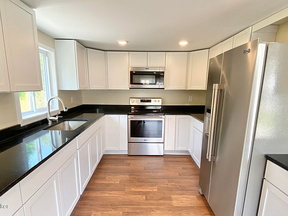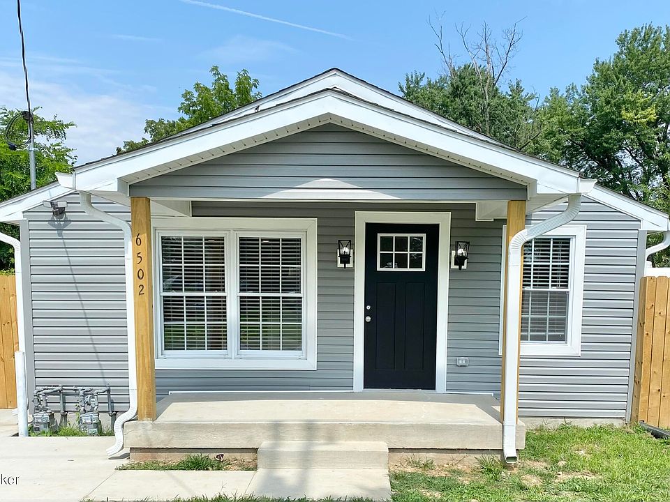 Beautifully updated home COMPLETELY RENOVATED inside & out! New everything... including roof, siding, gutters, fascia/soffit, painting, flooring, kitchen cabinets, granite, stainless steel appliances, lighting, bathroom vanities, plumbing fixtures, hardware, tile, etc. You'll walk into a spacious living room on your right with a large kitchen and dining area on your left. Make your way down to the hall to a large bedroom, a full bathroom and then you'll find a master bedroom with full bath (standup shower) in the room. Then you'll find a spacious laundry room on your right before you make your way outside onto the new deck. There is a brand new privacy fence, that encloses a parking spot on the freshly poured concrete driveway. This home has everything! Even a tool shed out back.
