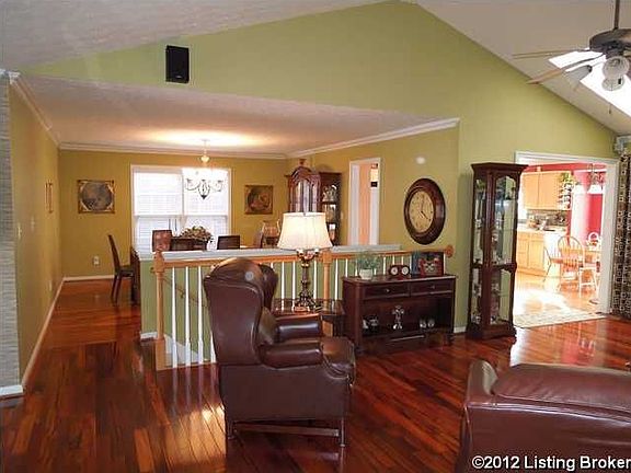 Well maintained walk-out ranch has lots of room to roam. You will love the open floor plan, wood floors, vaulted ceilings, and large rooms in the home. Beautiful wood floors adorn the foyer, great rm., kitchen, study, and dining room. The great room features a vaulted ceiling, skylights, fireplace and is open to the kitchen and dining rooms. Another fireplace and built in shelving compliment the study which makes a great living rm. as well. A large kitchen features a center island and plenty of cabinetry. An unusually lg. master suite w/sitting area makes a nice retreat area. A fantastic lower level features a media room complete with built in shelving that includes a "secret" cedar lined rm. Another family rm, a fitness rm. and half bath complete the bsmt. If this were not enough there is a 3 car garage, a security system and a wall mounted TV that remains with the home.