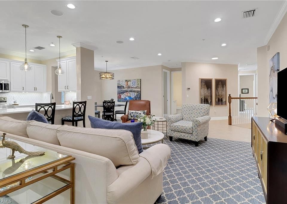 Welcome to the pinnacle of resort-style living in the prestigious Marbella Lakes community, just minutes from the heart of Naples. This exquisite end-unit Napoli model offers 3 bedrooms plus a den, 2 ½ baths, 2,288 square feet, and a 2-car garage. Thoughtfully updated, every surface has been refreshed, including painted walls, trim, ceilings, doors, and garage. The ceramic floors, including the lanai, have been professionally cleaned and sealed, and the lanai itself pressure-washed for a fresh start. Closets have been upgraded with custom California Closet Systems, while new lighting fixtures elevate the foyer, dining area, bathrooms, and stairway, complemented by energy-efficient LED recessed lighting throughout. The kitchen and baths have been beautifully transformed with freshly painted white cabinetry, new quartz countertops, marble backsplash, sinks, and faucets. The primary bath features an updated shower (2024), resurfaced bathtubs, and three new toilets (2023). New Hunter Douglas soft shades replace blinds in every room, and all bedrooms and the den feature new ceiling fans. New High-quality carpet graces the stairs, bedrooms, and den, while the laundry room has been enhanced with cabinets in place of wire shelving. Major updates include a new AC system with humidity control, a full suite of new appliances (2023–2024), and accordion hurricane shutters for nearly every window and lanai. Beyond the home, Marbella Lakes offers an unparalleled lifestyle. The 8,000 sq. ft. lifestyle center includes an indoor sports complex, fitness center, billiards and game room, social hall, and resort-style pool and spa with an oversized sundeck. Residents also enjoy tennis and pickleball courts, along with a full-time social director who organizes events and activities year-round. With onsite management, vibrant community life, and top-notch amenities, Marbella Lakes is the perfect place to call home—whether for families, couples, or singles seeking an active Naples lifestyle.