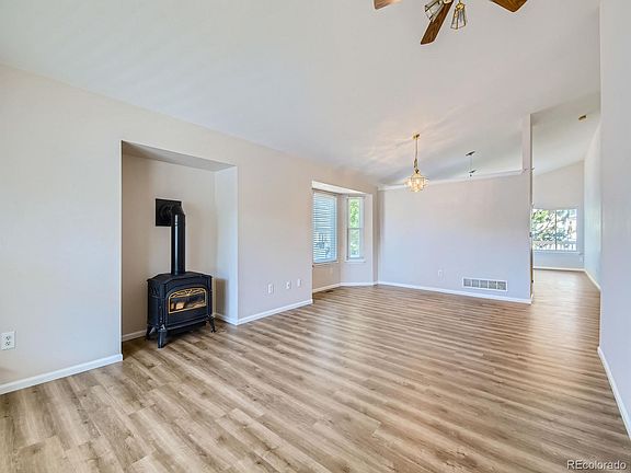 All shined-up and ready to go with new Interior 2=tone paint and new Flooring! This Ranch-style patio home is in Littleton’s coveted Peakview Village neighborhood. Leave your snow shovel and lawnmower behind…you won’t need them here! This quiet 55+ community is an excellent and affordable option for low-maintenance living in the SW suburbs. BEST DEAL around = snow removal and lawn care included for just $140/month! This charming 1996 home has 2 bedrooms, 2 baths, and an attached 2-car garage. No Stairs! Special features include: new interior paint, new flooring, newer A/C unit (~2 yrs), open floor plan with vaulted ceilings, newer double-pane windows, energy-efficient free-standing gas stove in the living room, large Bay Windows, New Roof 2023, a large private backyard deck, newer commercial-grade water heater (<5 yrs), and spacious finished garage with an Insulated overhead garage door. All the work is done...move-in ready!