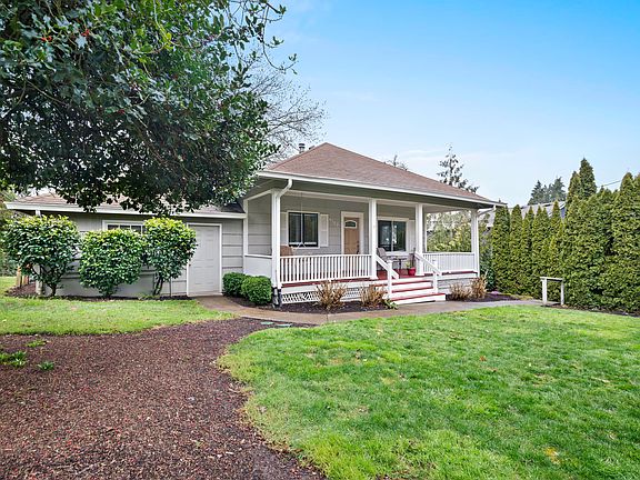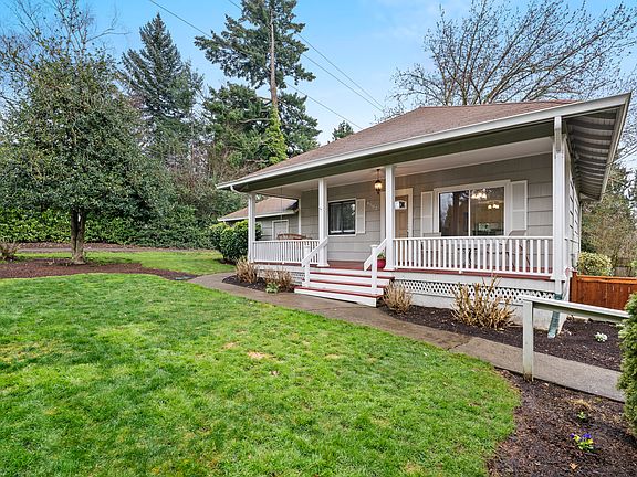 Adorable bungalow tucked away on quiet side of Garden Home rd. Mature arborvitaes enclose front, private yard. Sweet front porch w/swing, fir floors, A/C, updated bathrooms, open kitchen w/french doors opens to back deck & yard. Downstairs bedroom & bathroom w/ exterior entrance could make an excellent guest quarters, master suite, or Airbnb. Blocks from Old Market pub and convenient to Multnomah village, Gabriel park, and downtown!