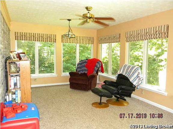Spacious Ranch style home located in Beautiful Seaton Place Subdivision in Fern Creek. Featuring, 3 bedrooms, 2 baths, with 2 additional finished rooms in basement, Vaulted Great Room with gas fireplace and new carpet, dining area off kitchen, large master bedroom with whirlpool tub and a 12 x 19 Sun Room with new carpet off master bedroom leading to a large deck, roughed in plumbing in basement for the 3rd bath, new porcelain tile flooring in kitchen with Granite countertops and tile backslash. Roof replaced in October, 2012, water heater replaced in November, 2012. Walk-in closet in master bedroom is plumbed for a stckable washer and dryer. Also laundry hook up in basement. 2 car garage.
