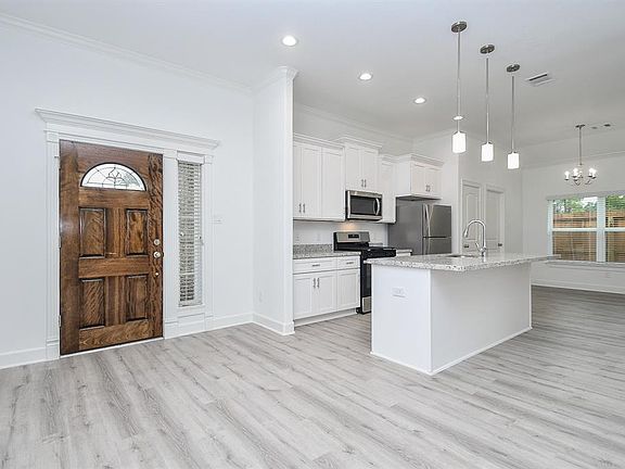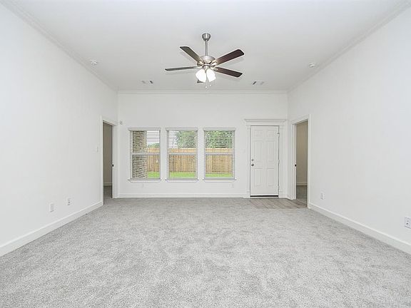 Sitting on a corner lot a modern home designed for contemporary living at an affordable price point. This thoughtfully crafted modern home is equipped with four bedrooms and 2 1/2 baths perfect for families or professionals seeking comfort and style. The kitchen sparkles with granite counter tops, while the living room is adorned with elegant crown molding. Natural light filters through 2-inch wood blinds, creating a warm and inviting ambiance throughout. Enjoy the convenience of a two -car garage and unwind on the tranquil covered patio. Another surprise!! the home comes with a complete appliance package Refrigerator, Stove, Microwave, and Dishwasher. Your going to love that the home has a half bath!!!! The best in affordable housing!!