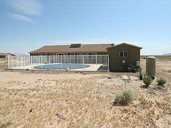 This beautiful 4 bedroom, 2 bath, manufactured home offers a finished Arizona room, refreshing pool enclosed by a safety fence and pool house. Ceiling fans, lots of windows, French doors, sunscreens, custom paint, carpet, tile and wood flooring throughout add a special touch to this well maintained home. The open kitchen features an electric range, dishwasher, disposal, island/breakfast bar, track lighting, plant shelves, serving buffet and ample cabinet space. The large family room has a media center and several niches with glass shelves. The master bedroom and bath has his and hers walk-in closets, vanities and separate tub and shower. With awesome mountain views to the north and a wide open range to the west, this home won't last long!