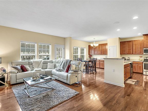 Immaculate! Nestled in the desirable Berkshire neighborhood of South Fayette. This quality home features a 2-foot extension, bright and open 1st level with hardwood floors, surround sound speakers in main living area, and whole house humidifier. A chef's dream kitchen with upgraded kitchen cabinets, large island and abundant pantry space. Beautiful window panel door leads out to the newer composite deck, complete with stair access to the backyard. Upstairs boast brand new carpet with three generous size bedrooms. The main bedroom features a soaking tub with jets and a large walk-in closet. The finished basement is perfect for entertaining with a sliding door walkout access to the backyard. Also equipped with a 3-piece plumbing rough in for a future bath. Berkshire community offers amenities such as a pool, clubhouse, playground, etc. Perfect location close to highways, shopping, schools, and the Montour Trail. Don't miss your opportunity to make this your forever home!