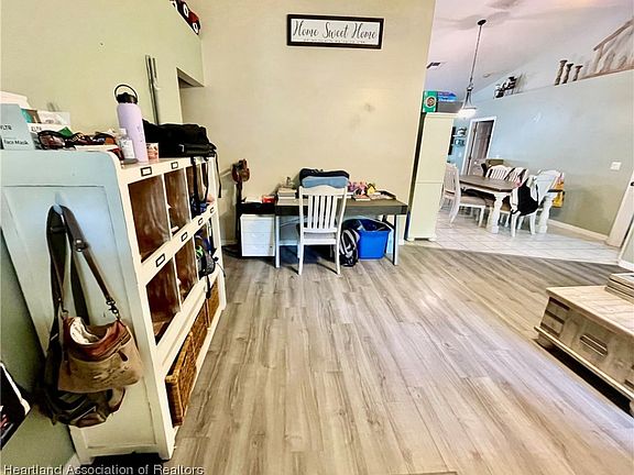 3 bed 2 bath home in the sought out community Sun 'N Lake of Sebring! Split floor plan with cathedral ceilings and planter shelves for decoration. Walking in you will appreciate the new vinyl floor flowing from the living room into bedrooms of the home. Generously sized master bedroom with a sizable 8'x6' ft walk in closet and extra reach-in closet. Dual individual vanity sinks in master bathroom with walk in shower. Nice open kitchen with newer stainless steel appliances and large breakfast bar to gather around. The two car garage is currently being used as a fourth bedroom and will be cleaned out back to a proper garage. There is a wall air-condition unit in the garage to keep the area cool. New 16'x10' ft utility shed for storage or convert to your desired private retreat room. The home also has roll down hurricane shutters installed. Sun 'N Lake community is complete with golf courses, pool, playground and restaurant.
