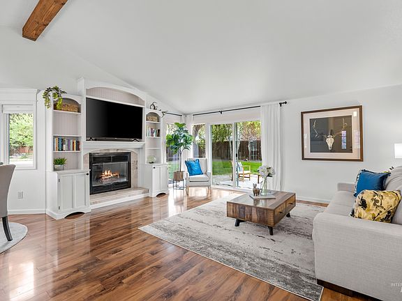 Situated in a peaceful location surrounded by foothills and everything great to love about Boise, is this charming, single level home. This house is a prime, move-in ready opportunity and offers ease of living and a lock and leave lifestyle. The welcoming great-room floorplan is accentuated with vaulted ceilings and a designer wood beam, wood burning fireplace surrounded by built-ins, solid surface flooring through the main living areas and expansive windows that provide a generous flood of light throughout. This home features a spacious kitchen with plenty of cabinets and workspace, and an inviting Primary suite with a large soaker tub, separate shower, and direct access to the private backyard. There is even a 3 car garage! This gem blends the best of Boise into an amazing home and lifestyle opportunity.
