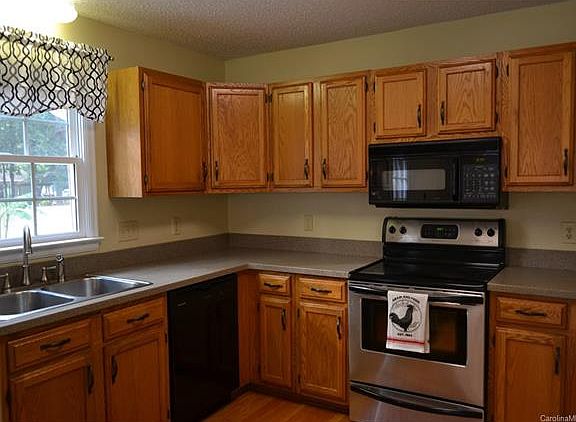 Great floor plan in this 3BR ranch with woodburning fireplace, built in shelves in family room and big corner lot. Hardwood in kitchen and Dining area, corian countertops, new smooth top stove, dishwasher, and microwave. Covered front entry and huge two level deck on back opening into fenced yard with boxed garden area. Oversized detached garage has covered patio at back. Quick access to I485 and shopping. Low Union County taxes, Porter Ridge Schools and no HOA fees. Hurry- This one won't last.