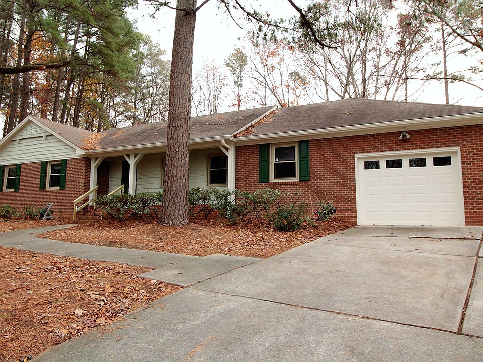 Brick ranch in great North Raleigh location! 4 bedrooms with two masters, each with full baths. 2500 square feet. Steam shower and large walk in closet. Fenced backyard with wooded lot. Freshly painted inside and out. Home has been professionally cleaned and ready for a quick move in! 1 car garage. Pets are negotiable with a $250 nonrefundable pet fee. Schedule your tour today!