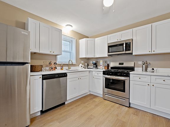 Feel right at home in this peaceful, spacious four-bedroom house. On the main level you have a cozy living room, dining area, and a beautiful modern kitchen loaded with everything you need. Upstairs you have another two bedrooms and a full bathroom. The laundry washer and dryer are in the basement. You also have a huge patio deck in the back yard. Located five minutes from Midway Airport, this freshly remodeled home is just the right place for you to relax while you're in Chicago.