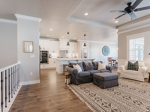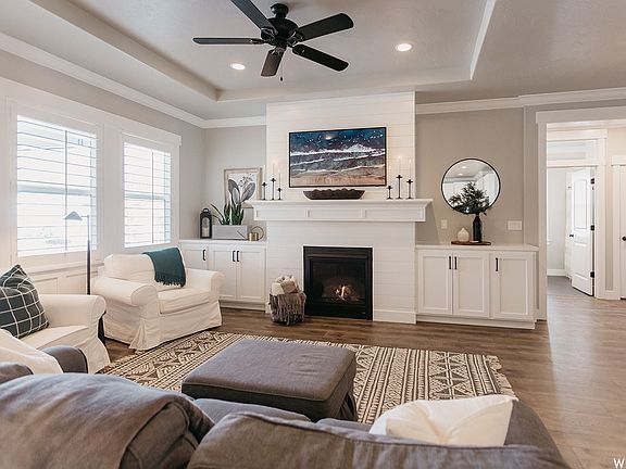 *BACK ON THE MARKET DUE TO BUYERS FINANCING* This custom home showcases attention to detail and style. Facing south and nestled up against the mountain it feels like your own little oasis. Enter to an amazing open floor plan with views of the family room and gourmet kitchen. The family room features a gas fireplace, built in shelves, and tons of space. The kitchen features tons of upgrades with a large kitchen island, double ovens, a build in gas stove, 2 fridges and pop out semi formal dining room this house was built to entertain. The main level hosts the owner's bedroom, with ample windows and the master bathroom. The bathroom has a beautiful oversized shower, and large soaking tub. The vanity has two sinks and an incredible amount of storage. On the main floor are also two large bedrooms, a full bathroom, and a laundry room and mud room with custom built in shelving. Downstairs, you'll find large windows that let in tons of light along with a large family room and wet bar that is perfect for hosting any movie or game night! Downstairs you will also find a home gym (that can be converted into a third bedroom, 2 large bedrooms, and a full bathroom. Sitting on .35 of an acre with no backyard neighbors enjoy mountain living within 5-10 min from shopping and dining! Don't miss the covered patio, hot tub, and fire pit perfect for those amazing Utah seasons! This home has it all! Schedule a showing today!