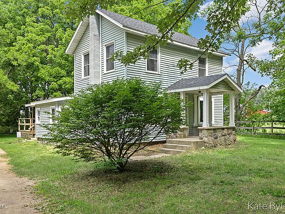 Charming Farmhouse situated on a 2.1-acre lot in Caledonia Schools has been completed renovated! Offering nearly 1,500 sq. ft. of finished living space, this home offers an updated living room with fresh paint & new carpet, dining room & kitchen with Hickory wood flooring. Kitchen boasts new cabinets, counters & subway tile backsplash plus stainless steel appliances. Walk-in pantry for extra storage. Main bath has been completely updated to include a new vanity, lighting and tub! Convenient laundry/mudroom offering built-in storage & utility sink. Main floor bedroom plus an office. Upstairs is a large master bedroom with walk-in closet. Deck off the kitchen provides a great place to entertain! Storage shed offers room for toys. Serene setting with room to expand with gardens or a future garage/pole barn. Newer furnace/AC, well pump, water heater, windows, & trim. Peaceful setting! ALL OFFERS DUE TUESDAY AT 10AM.