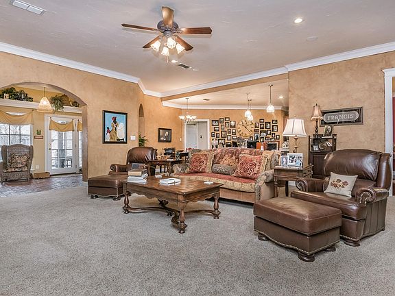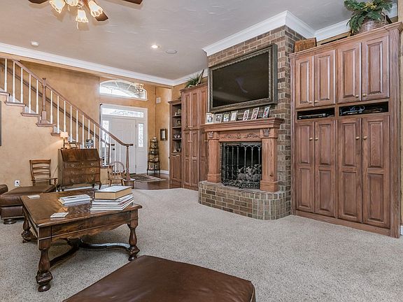 Custom home built by Ron Connally. Open floor plan for the living, breakfast area, and kitchen. Kitchen has a gas cooktop, double oven, and island. Living room is roomy with great builtins and large wood burning fireplace as a wonderful focal point. Isolated master has his/her vanities and walk in closets, jetted tub, and walk in shower. Second and third bedrooms share a Jack & Jill bath with separate vanity area. Guest bedroom with access to a private bathroom. Large utility room with ample builtin storage. Bright office/sitting area with great natural light, formal dining room, inviting sunroom, large bonus room, and basement with media components finish of the living areas! Outdoor living area with kitchen and outdoor fireplace is perfect for entertaining!