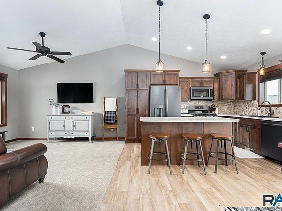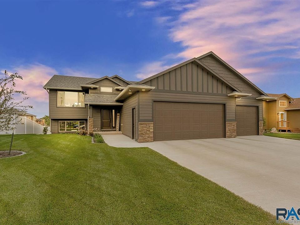 WOW! Come enjoy life on the East side of Sioux Falls in this quiet, up and coming neighborhood! Built in 2018, this 4 bedroom, 3 bath home is move in ready and jam packed with amenities! The main living space has vaulted ceilings with an open floor plan and loads of natural light. Trayed ceilings, an attached full bath, a walk in closet are in the spacious master suite. The family room has a fireplace, wet bar, and walk out to a patio perfect for entertaining. The basement also has two additional bedrooms and a full bath. The oversized 3 stall garage is loaded to the MAX! (floor drains, coated floor, heater,...) You won't want to miss out on this beautiful home!