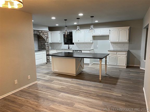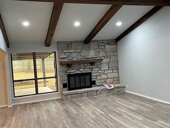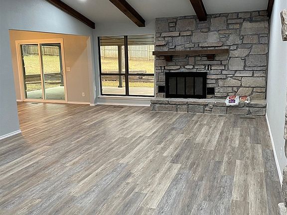 Another outstanding HL&KS Properties deluxe remodel! So much new: Island, barn doors, glass shower doors, tile, luxury vinyl, patio doors, all kitchen appliances (convection cooktop, built-in oven/micro combo, granite, pendant lights, can lights, disposal, faucets, sink and check out the 5x12 pantry with granite top recipe desk. New concrete pour extra large covered patio for entertaining. Open floor plan offers huge entertaining area. Flex room can be game/office/4th bedroom, etc. Stone has our graywash.