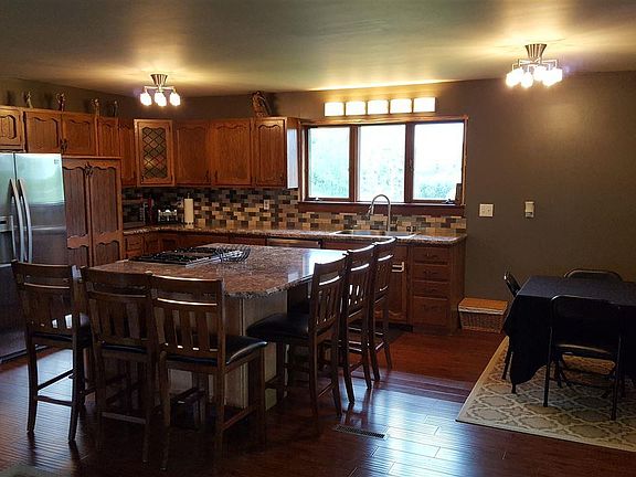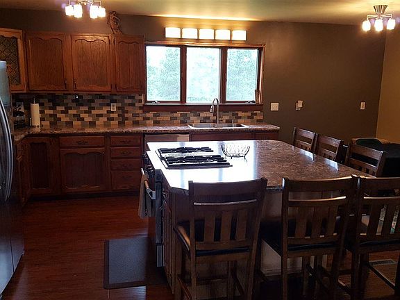 Great potential with this 3+ bedroom raised ranch with walkout basement and 36 x 40 Garage with slab on 40 acres. Main floor has updated kitchen with huge island in an open layout with dining and living room. Off the living room is a screen porch to enjoy the outdoors without the bugs! 3 bedrooms and a large bath round out the main level. Down you will find a large family room with walkout to the back yard along with another large multi-use space and 2 additional non-conforming bedrooms, 3/4 bath with laundry and a utility room. New furnace (propane) and central air 2012. Also has wood add-on furnace if you like to burn wood. New 4 bedroom mound septic in 2014. Property features fire pit, good eating apple trees, strawberry patch, wild raspberries, perennial gardens, and even a fenced in, insulated chicken coop on a cement slab! All this property needs is your finishing touches to build a bunch of equity and have your own little chunk of paradise.