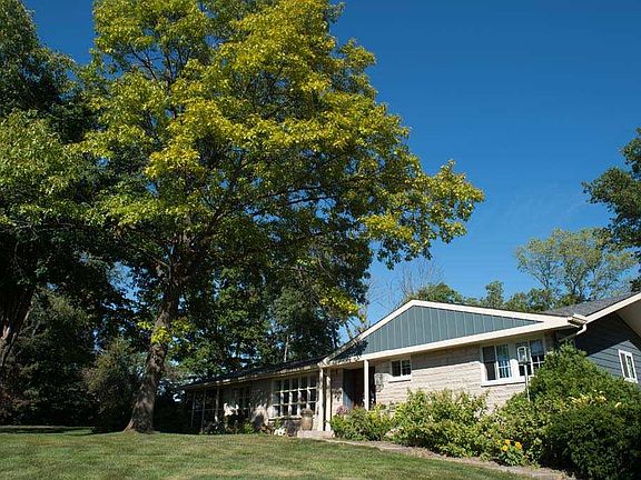 This wonderful home is tucked into a beautiful lot off Homestead Road on Fort Wayne's southwest side and is just minutes from schools, the YMCA, tennis courts, the library and so much more. A landscaped berm with trees and perennials keep this estate private. The front yard has a state park look with stately trees within the grass while the woods border the remaining 3 sides of the property. The sloped back yard has a Monolith 1640 in-ground pool with a special order black opal finish (4' to 8'6" deep), an electronic pool cover and a nice large deck. The pool house, currently used as a potting shed, has great potential for a serving/changing area. As a potting shed, the double doors provide an easy way to bring the riding tractor in and out of the storage part of this pool house. Inside, hardwood floors give this home a great look. The long living room has a sitting area, fireplace and a piano area. The large windows that overlook the front grounds provide views of the built-in outdoor window planters. The dining room is a defined extension of the living room. The updated kitchen has a wonderful hearth room, peninsula, butler's area and access to the screened in porch. The hearth room opens to the back patio via sliders. This patio, a perfect place for grilling and entertaining, overlooks the pool and woods beyond. The master suite has an updated bathroom, walk in tile shower, upscale vanity and a large walk-in closet. Bedroom 2 has corner windows with architectural interest while bedroom 3 offers a great deal of space. The finished lower level's office has built-in book shelves and a long butcher-block style desk top. The family room has fireplace and windows. This finished basement is actually a walk-out through the home's garage. There is not a hint of anything faux in this house... the countertops are granite, the floors are either wood, slate or bamboo (lower level). Walk in showers are tile. The end grain on the front door speaks to its solid nature and beautiful construction. Noteworthy trim is found around the windows and door frames and crown mould. The limestone fireplace is yet another example of the beautiful materials that have gone into this home. Please see improvements (attached to listing).